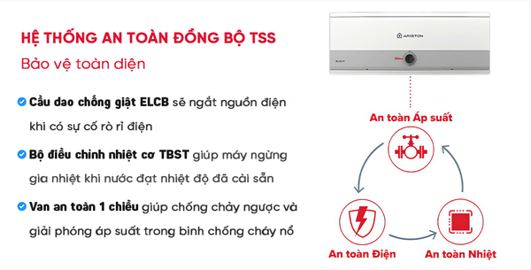 Rơ le nhiệt cơ TBST: Tự động ngắt điện khi nhiệt độ nước trong bình đạt tới mức nhiệt đã cài đặt sẵn. Giúp tránh tình trạng quá nhiệt gây cháy nổ bình