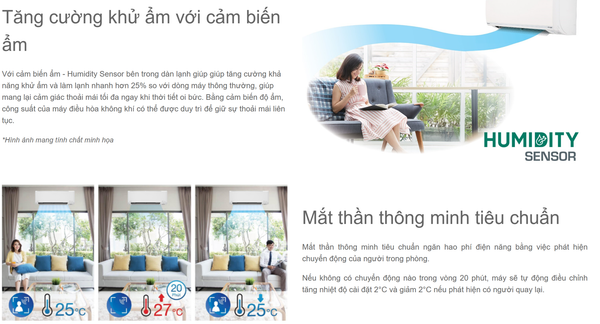 - Tiết kiệm điện với công nghệ Inverter và mắt thần thông minh tiêu chuẩn