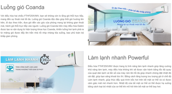 - Luồng gió Coanda giúp phân bổ không khí tươi mát đều khắp phòng