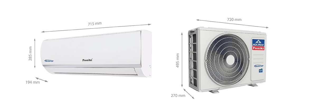 | Kích thước sản phẩm | Cụm trong nhà | mm | 715 x 194 x 285 |